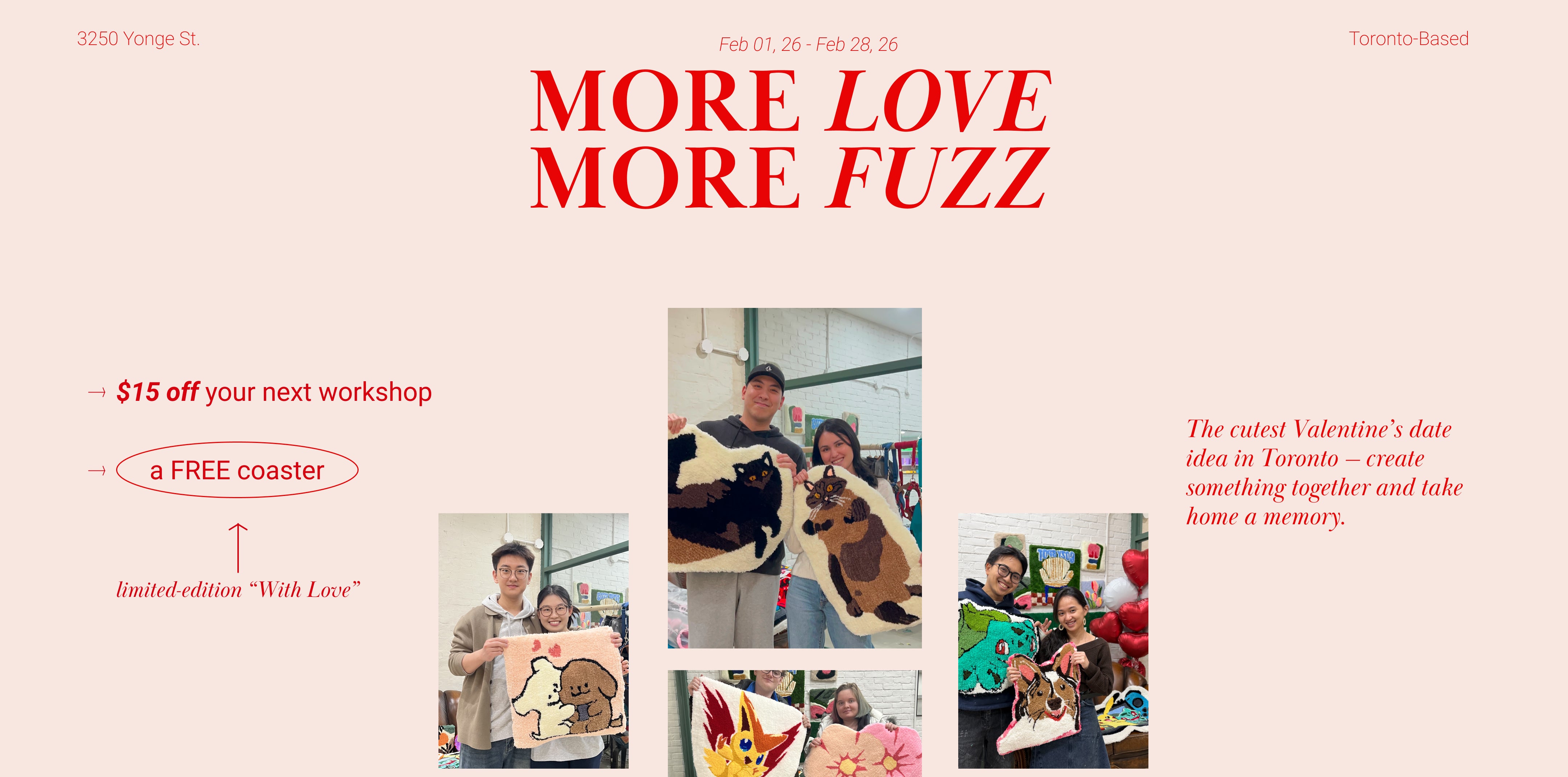 Our street-front workshop is a relaxed, inviting space for tuft art. With friendly, skilled pros by your side, step in, unwind, and let your imagination tuft wild!
